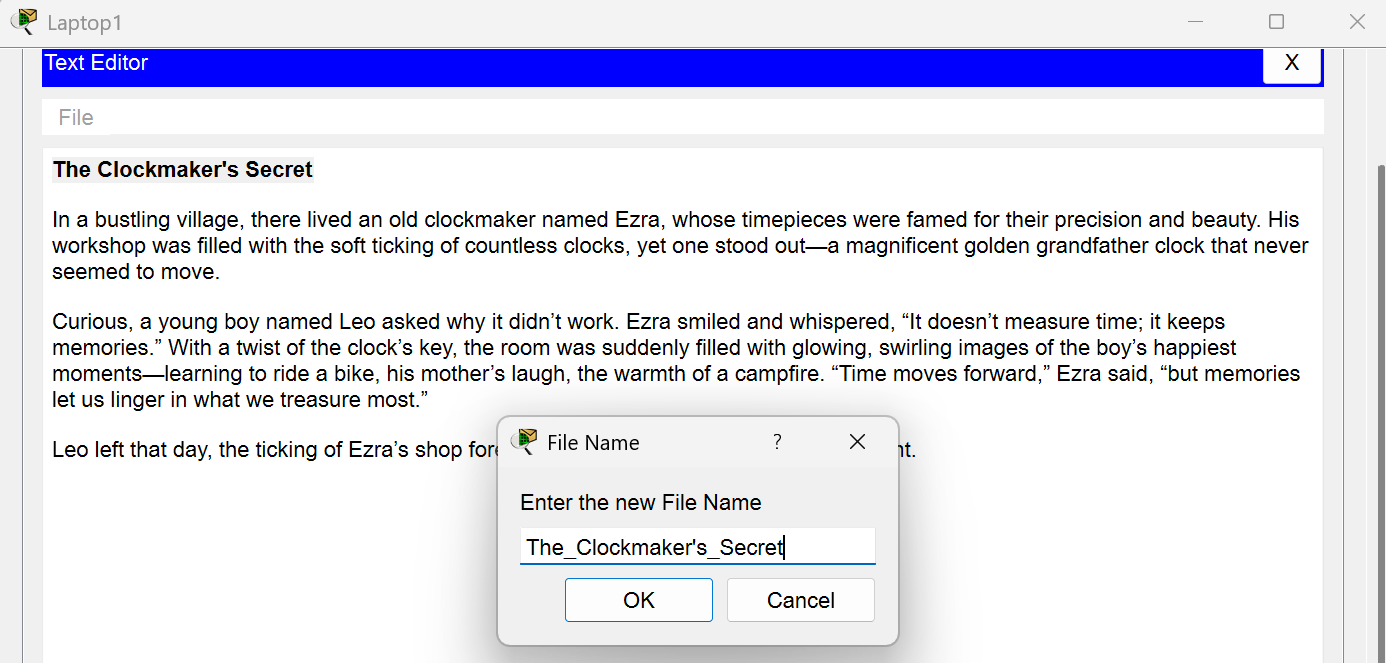 Figure 12: Creating a text and uploading it to the FTP server using Laptop1.